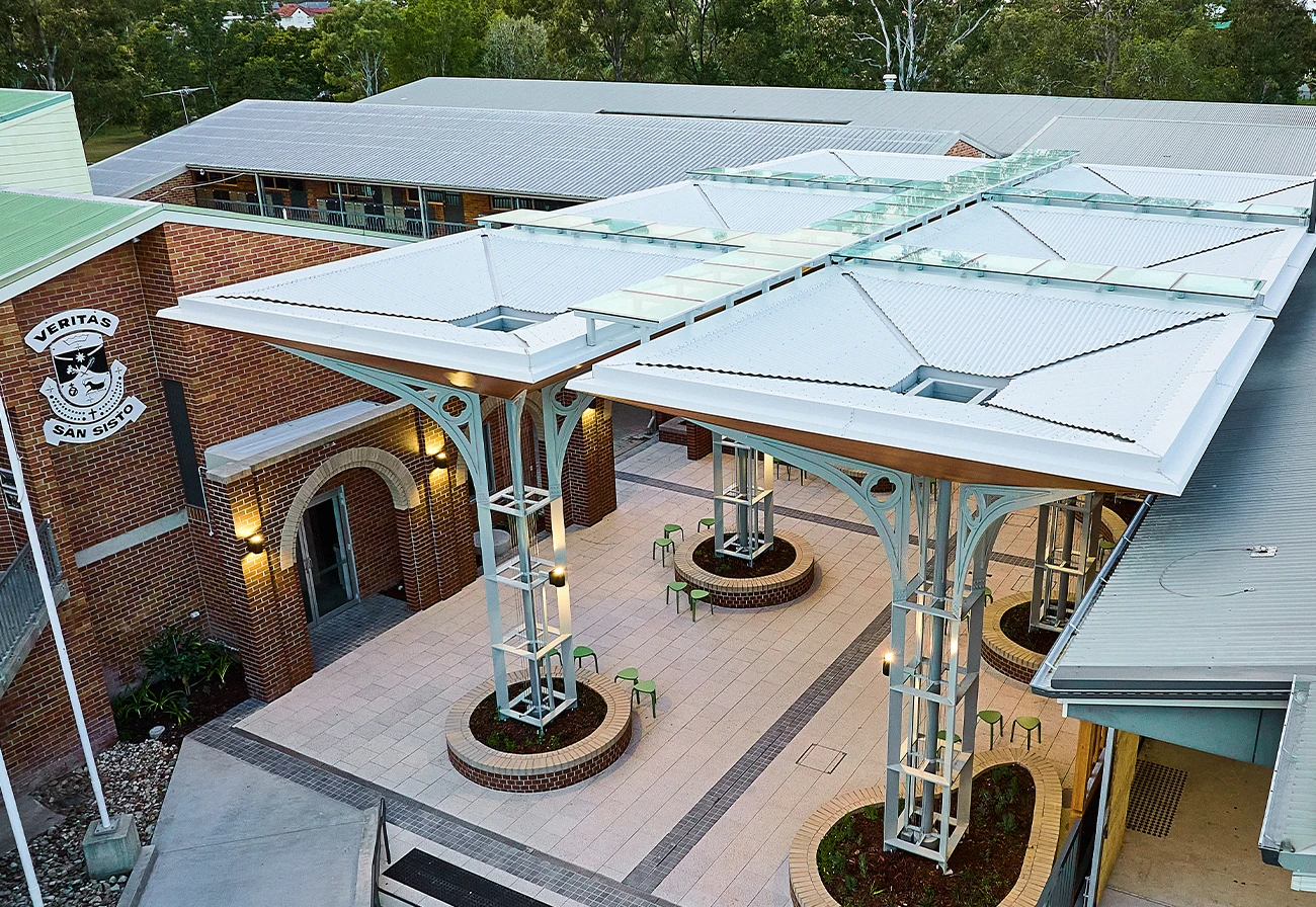 Working alongside the Architect – Architectural Collaborative, the highly detailed project includes 6 stunning architectural shade structures along with high quality brick and metalwork finishes.